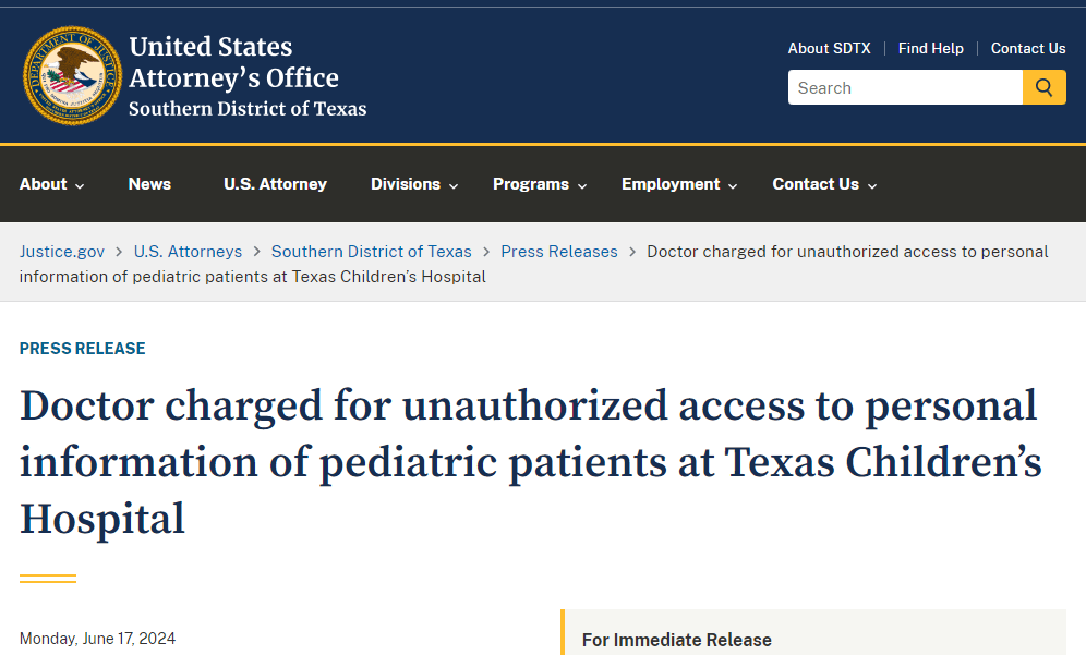 The four-count indictment alleges Haim obtained personal information including patient names, treatment codes and the attending physician from Texas Children’s Hospital’s (TCH) electronic system without authorization. He allegedly obtained this information under false pretenses and with intent to cause malicious harm to TCH.